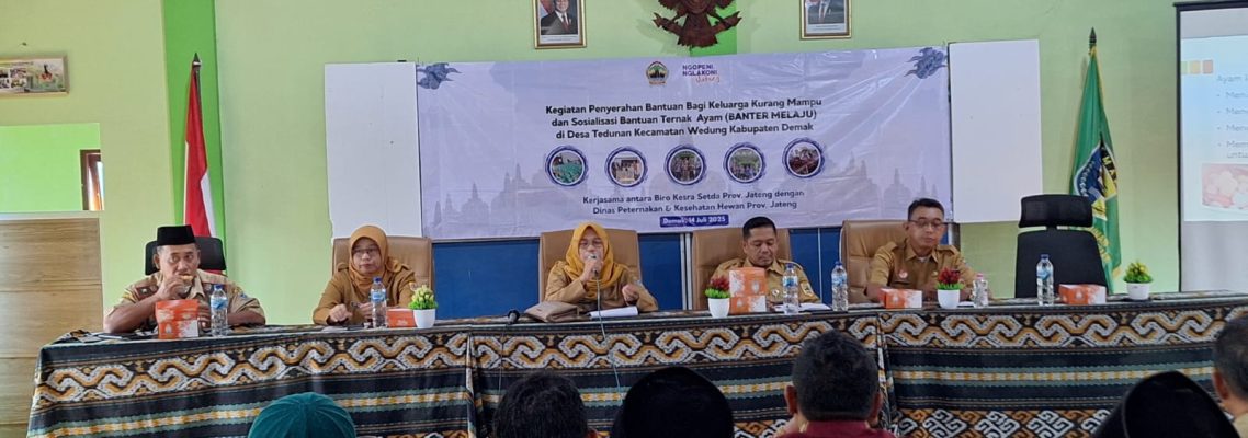 PKH – Dalam upaya mendukung percepatan pengentasan kemiskinan ekstrem di Kabupaten Demak, pada Senin, 14 Juli 2025 telah dilaksanakan kegiatan sosialisasi bantuan ternak ayam di Desa Tedunan, Kecamatan Wedung. Kegiatan ini merupakan bagian dari program BANTER MELAJU (Paguyuban Peternak Menuju… Continue Reading…