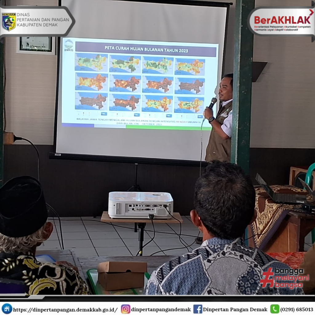 Hadir pada kegiatan ini petugas BMKG Provinsi Jawa Tengah, Latif, yang menyampaikan gambaran prakiraan cuaca dan persiapan tanam tembakau di tahun 2024. Prakiraan BMKG menyebutkan bahwa musim kemarau di Kecamatan Mranggen dimulai pada dasarian II bulan Mei hingga sekitar 13-15 dasarian ke depan, sekitar akhir September 2024.