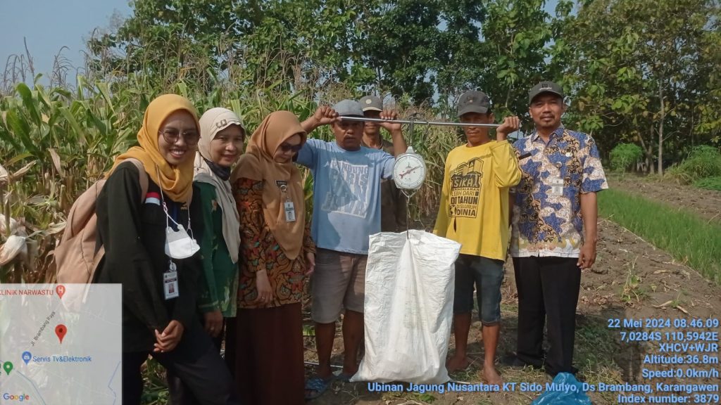 Pada hari Rabu Tanggal 22 Mei 2024 PPL BPP Karangawen melaksanakan kegiatan ubinan tanaman jagung di poktan Sido Mulyo Desa Brambang. Varietas jagung yang diubin jagung nusantara R1. Pengambilan sample ubinan dengan ukuran 2,5 m x 2,5 m. Hasil ubinan I mendapatkan hasil 8,5 dan ubinan II mendapatkan hasil 8,7 kg.