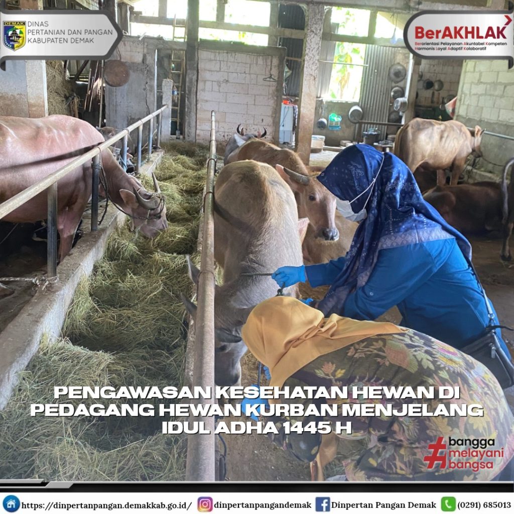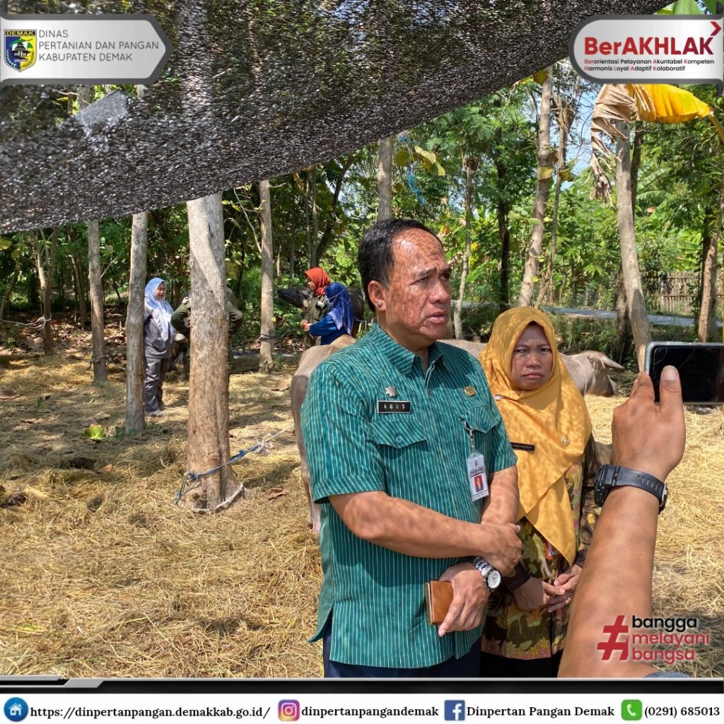 Selasa,11 Juni 2024 Dinas Pertanian dan Pangan Kabupaten Demak melakukan pengawasan pada hewan kurban di tingkat Pedagang yang ada di Desa Kramat, Kecamatan Dempet. Kepala Dinas Pertanian dan Pangan Kab. Demak Bapak Agus Herawan,S.IP,MM menyampaikan bahwa menjelang hari raya Idul Adha 1445 H telah menerjunkan petugas untuk memeriksa hewan kurban baik Medik Veteriner maupun Paramedik Veteriner di tingkat pendagang maupun di tingkat peternak. Tujuan dari dilakukan pemeriksaan kesehatan ini adalah memastikan bahwa ternak yang beredar di masyarakat betul dalam kondisi sehat .