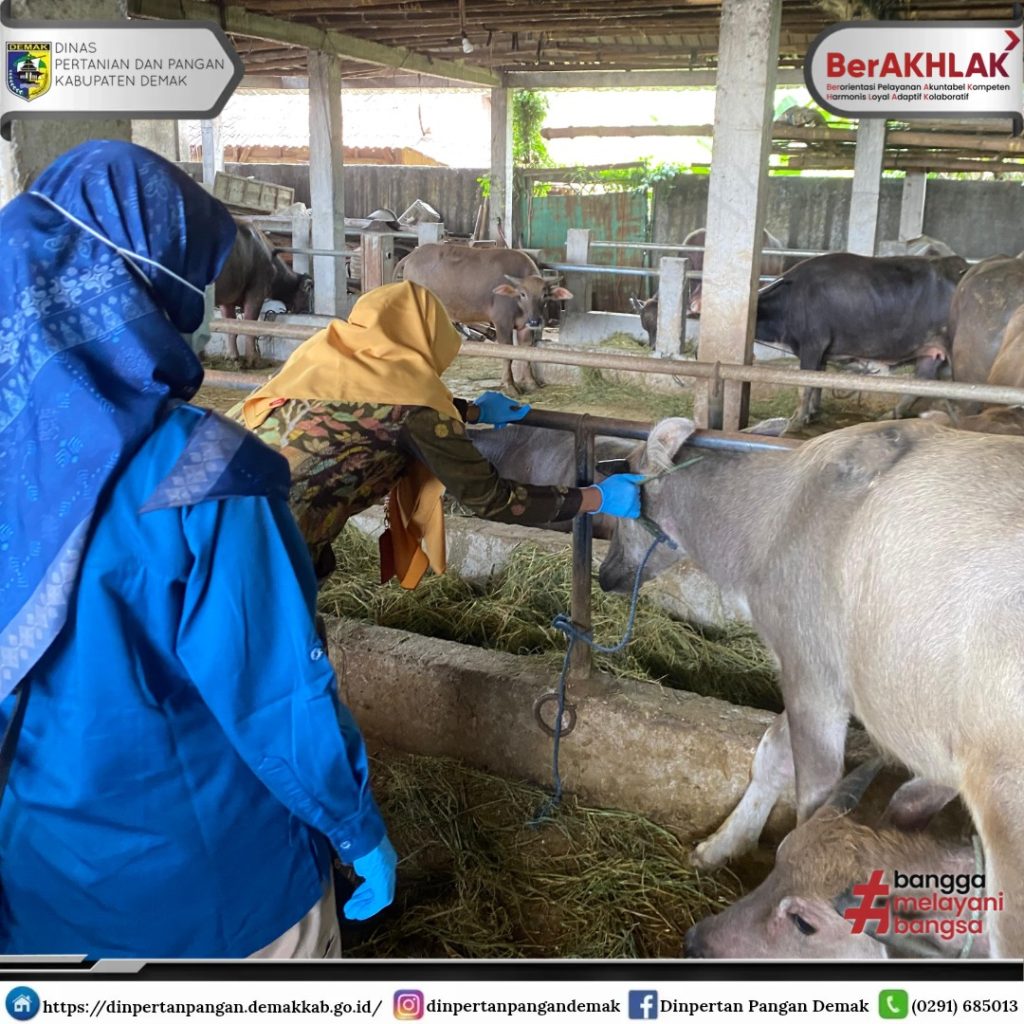 Pada pemeriksaan kali ini di kandang milik Bp. Saeun memiliki ternak kerbau sebanyak 80 ekor dan hampir 80% sudah terjual. Beliau menyampaikan bahwa permintaan ternak datang sebagian besar dari Kecamatan lain seperti Kecamatan Wedung dan Kecamatan Bonang. Selain dilakukan pemeriksaan kesehatan pada kerbau ,untuk pedagang ternak diberikan pulang desinfektan sebagai upaya meminimalisir sebaran penyakit. Selain memeriksa di kadang Bp. Saeun, memeriksa juga di kandang Bp. Nuryadi dengan populasi 30 ekor kerbau dan kandang Bp. Karsumin dengen populasi 65 ekor.