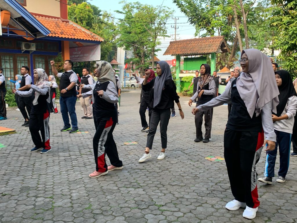 Dibimbing oleh instruktur yang berpengalaman, peserta senam pagi dengan antusias mengikuti setiap gerakan, menyesuaikannya dengan irama musik yang mengalun. tawa riang terdengar di antara para pegawai, menciptakan ikatan kebersamaan dan semangat positif yang membara.