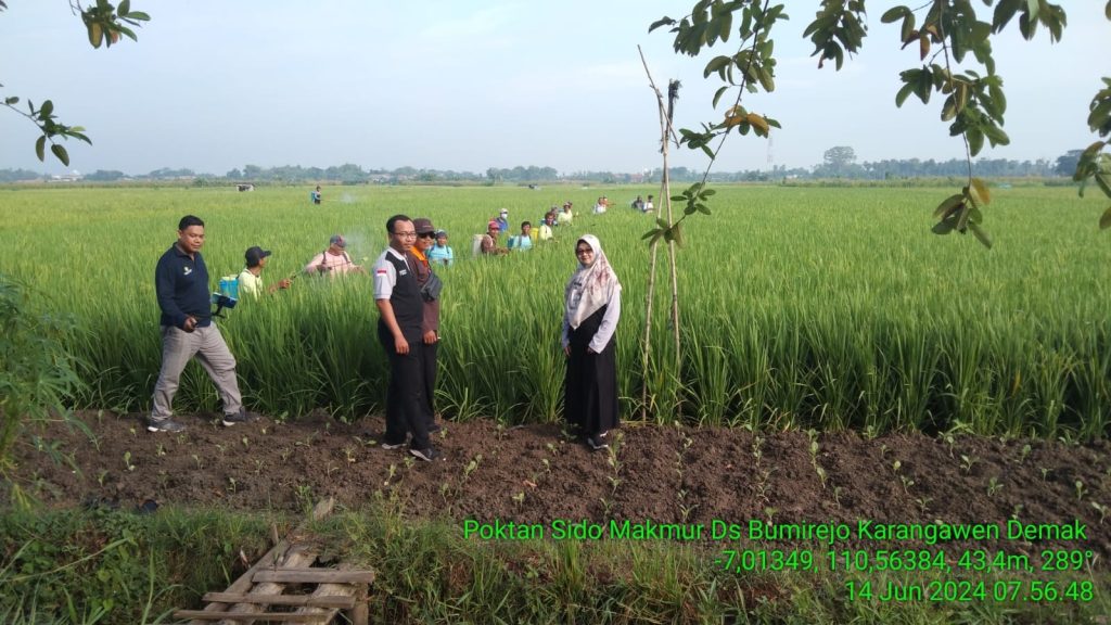 Pada hari Jum’at tanggal 14 Juni 2024 pukul 07.30 wib telah dilaksanakan giat gerdal hpt (gerakan pengendalian hama dan penyakit tanaman) pada tanaman padi. Dilaksanakan oleh anggota kelompok tani (poktan) Sido Makmur di areal sawah anggota poktan. Di dampingi oleh petugas popt provinsi jawa tengah dan ppl BPP Kec. Karangawen.