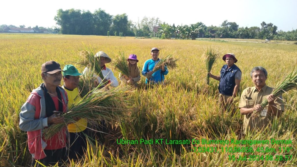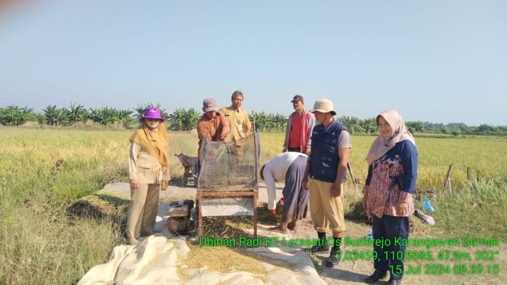 Pada hari Senin tanggal 15 Juli 2024 telah dilaksanakan kegiatan ubinan padi swakarsa di poktan Larasati Desa Bumirejo dengan ketua poktan Bapak Marno. Dilaksanakan oleh anggota kelompok tani bersama tim PPL BPP Karangawen. Berlokasi di sawah milik Bapak Paryo Temon dan Bapak Edi Handoyo.