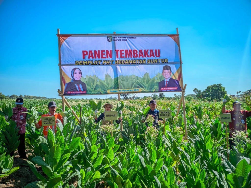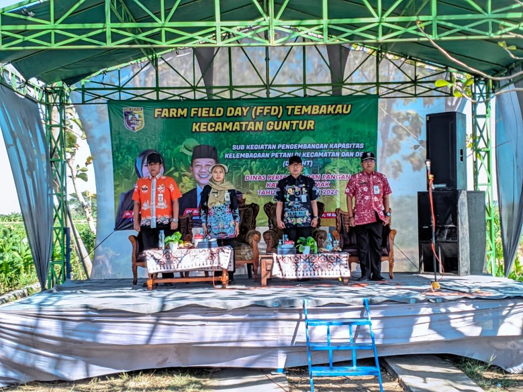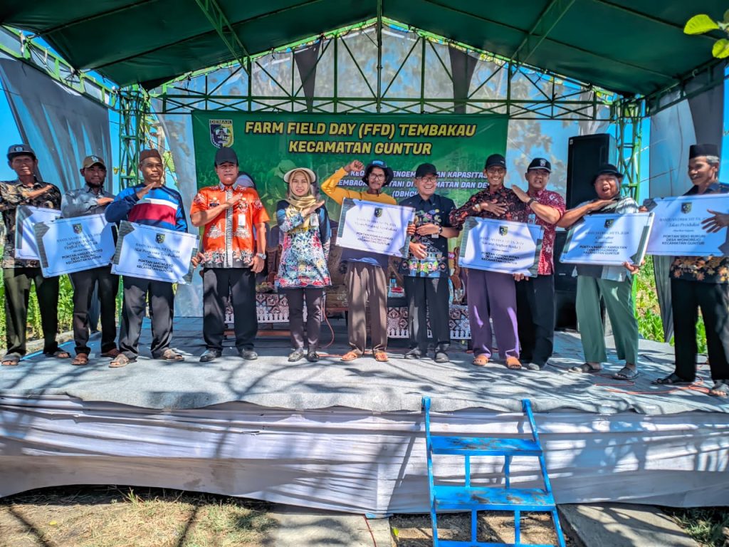 Pada kesempatan ini Bupati, Wakil Bupati, Kepala Dinas Pertanian dan Pangan, Plt. Kabag Perekonomian dan SDA Setda, serta Camat Guntur melaksanakan panen tembakau terlebih dulu bersama ketua kelompok tani setempat.