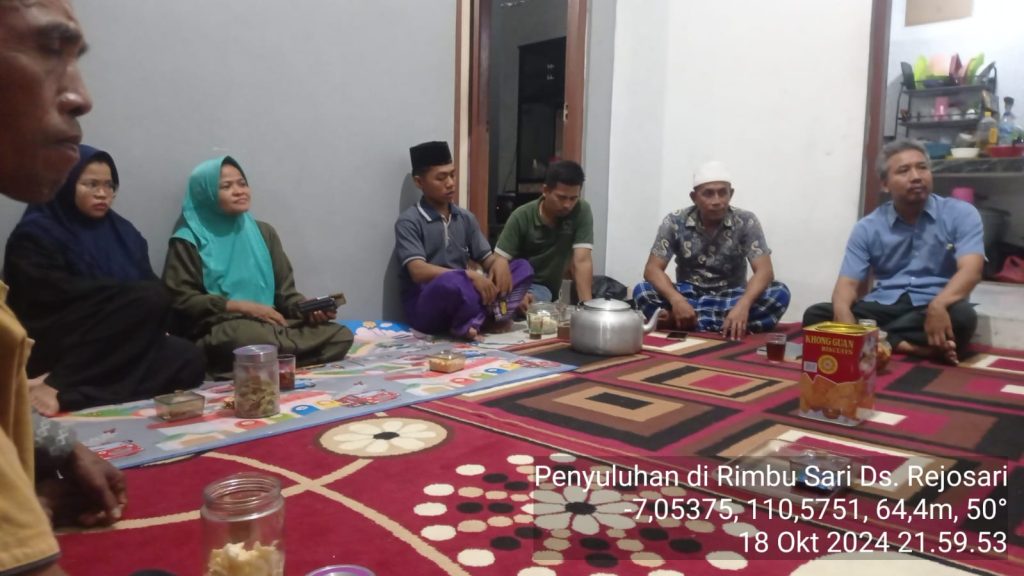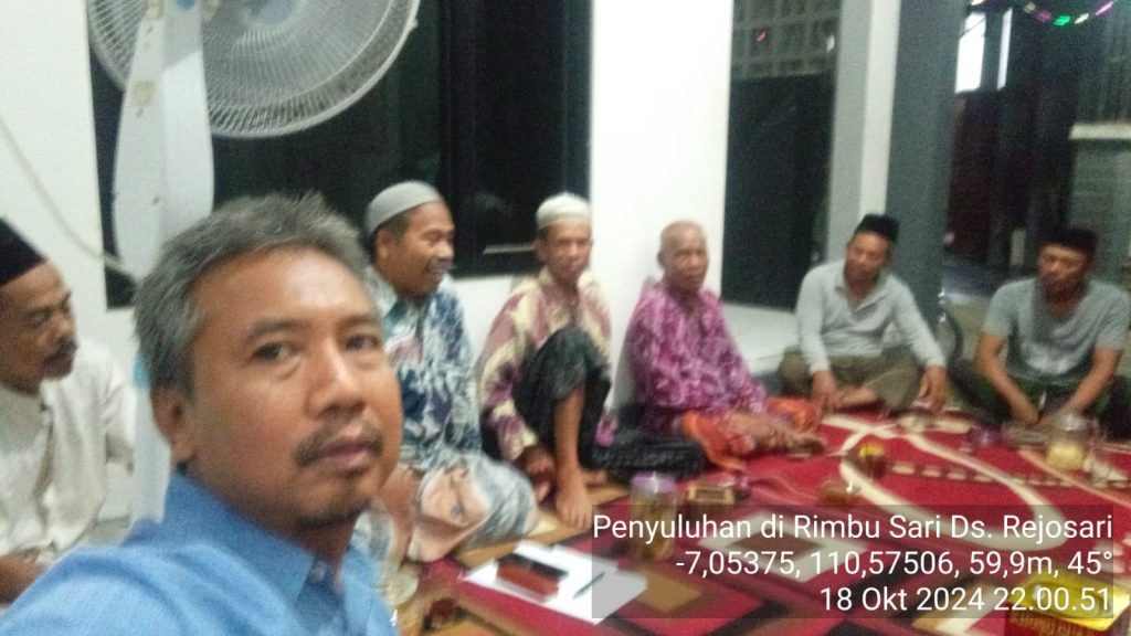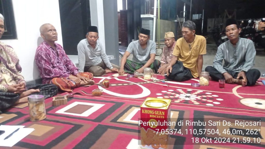 Pada hari Jum’at malam tanggal 18 Oktober 2024 jam 20.00 wib Ponco selaku PPL BPP Karangawen telah melaksanakan giat penyuluhan di kelompok tani Rimbu Sari Desa Rejosari Kec. Karangawen. Penyuluhan pertanian adalah proses pembelajaran yang dilakukan penyuluh kepada petani dan keluarganya untuk meningkatkan produktivitas, efisiensi, dan kesejahteraan usaha pertanian. Tujuannya adalah agar petani dan keluarganya mampu memecahkan masalah sendiri dalam meningkatkan hasil usaha dan kualitas hidup.