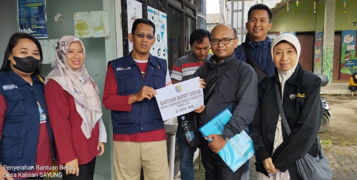Penyerahan Secara Simbolis Bantuan Beras Cadangan Pangan Pemerintah Daerah Untuk Korban Banjir di Desa Kalisari Kecamatan Sayung