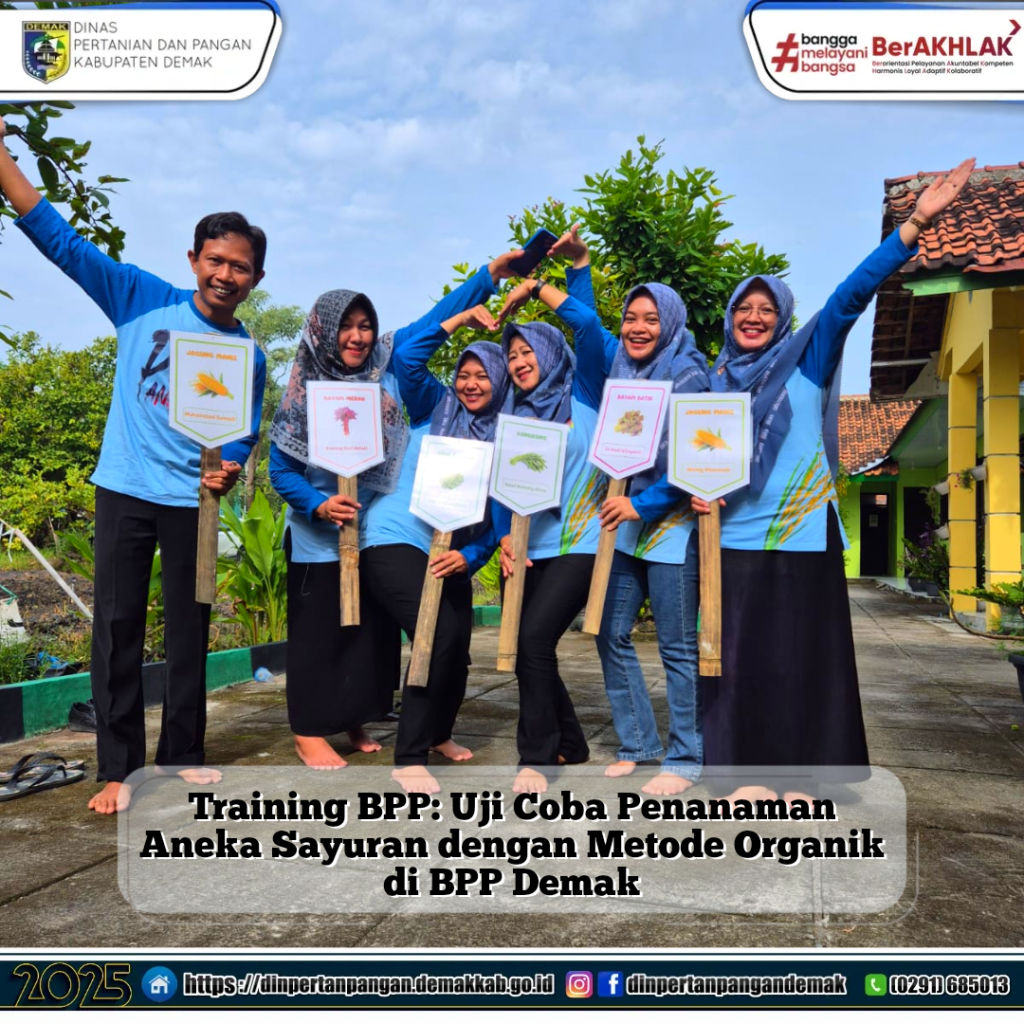 Balai Penyuluhan Pertanian Kecamatan Demak menggelar kegiatan training berupa uji coba penanaman aneka tanaman sayuran dengan metode organik. Kegiatan ini bertujuan untuk meningkatkan pemahaman dan keterampilan para penyuluh pertanian dalam menerapkan teknik pertanian organik secara langsung di lapangan.