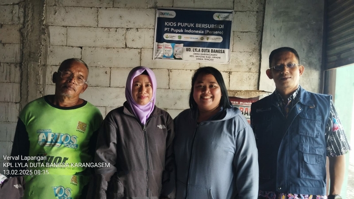 Pada Kamis, 13 Februari 2025 ini kami tim Verval Kecamatan Sayung; Hari Mul dan Catur Hikmah serta PPL wilbin Indira dan Maryuti melakukan monitoring lapangan terkait ketersediaan pupuk subsidi di KPL Desa Karangasem yaitu UD. Gemah Ripah yang melayani 101 petani dan UD. Lyla Duta Bangsa yang melayani 70 petani.
