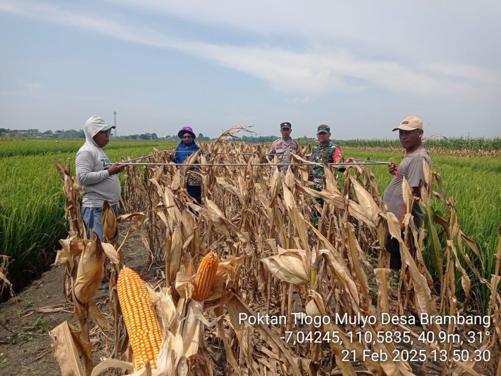 Pada Hari Jum’at Tanggal 21 Februari 2025 dilaksanakan ubinan jagung varietas BISI 321 bantuan pemerintah di Poktan Tlogo Mulyo Ds. Brambang Kec. Karangawen Kab. Demak.  Ubinan dilaksanakan oleh tim PPL BPP, Babinsa, Babinkamtibmas berserta anggota kelompok tani. Dilakukan pada lahan seluas 2.5 x 2.5 m² di lahan milik Bapak Jumari.