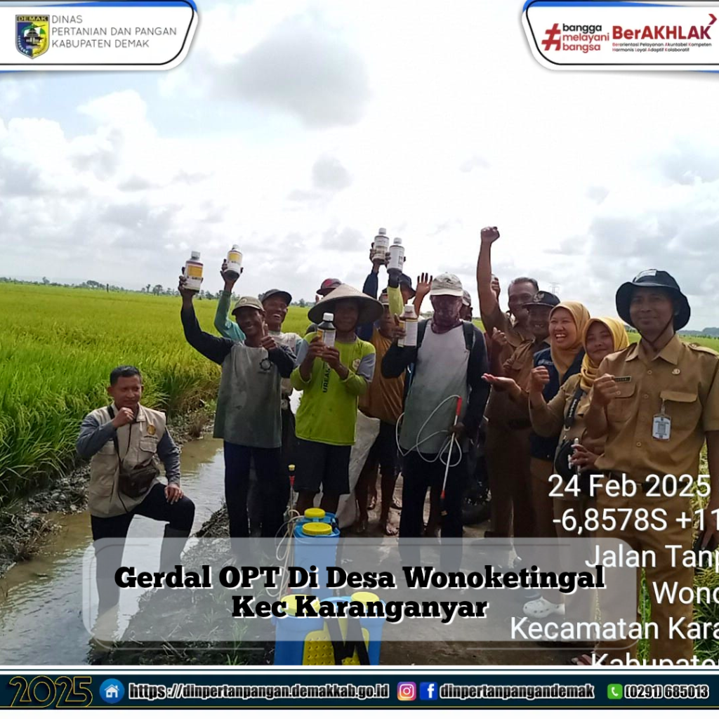 Senin (24/02/2025) PPL Wilayah Kecamatan Karanganyar bersama Petugas OPT Kec Karanganyar dan aparat desa setempat, dan para petani melaksanakan Gerdal (Gerakan Pengendalian) OPT di Desa Wonoketingal . Seperti kita ketahui pada bulan Januari dan pertengahan Februari ini curah hujan masih cukup tinggi namun tidak menentu sehingga mengakibatkan terjadinya kondisi linkungan yang lembab dan hangat dimana kondisi tersebut merupakan kondisi ideal yang memicu pertumbuhan hawa wereng.