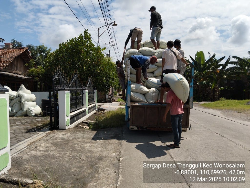Dalam satu minggu ini, serapan gabah dilaksanakan di desa Trengguli. Sejak hari Minggu (9/03/2025) sampai hari ini Rabu (12/03/2025) petani sangat antusias. Jumlah yang sudah terserap lebih dari 15 ton tepatnya 15.478 kg. Pembelian Bulog dengan harga Rp. 6.500 per kg GKP saat ini dianggap petani lebih menguntungkan daripada gabah dijual kepada tengkulak/perorangan. Sementara, perorangan hanya mematok harga di Rp. 5.900 sampai Rp. 6.300/kg.