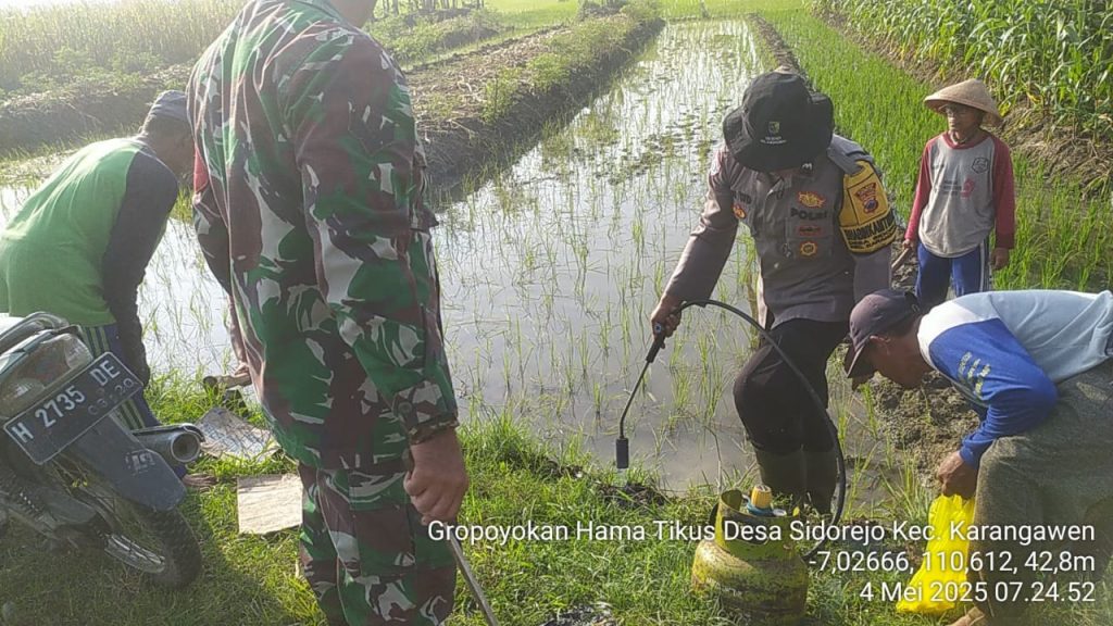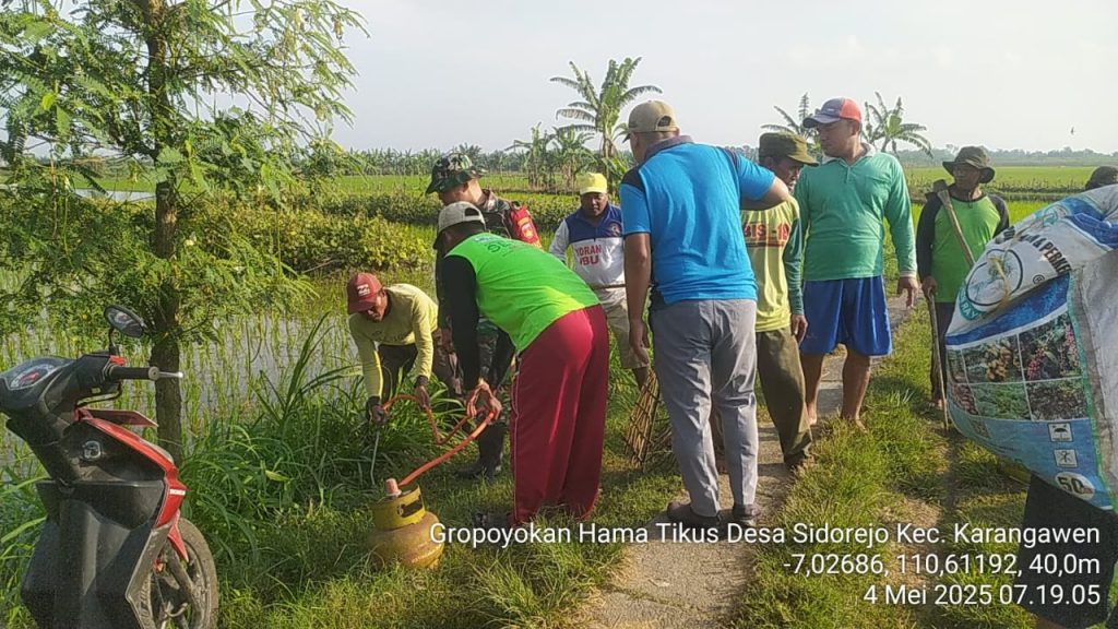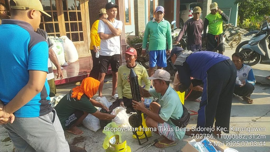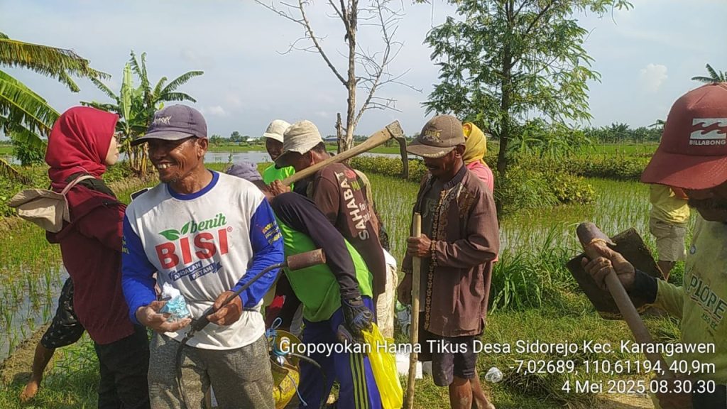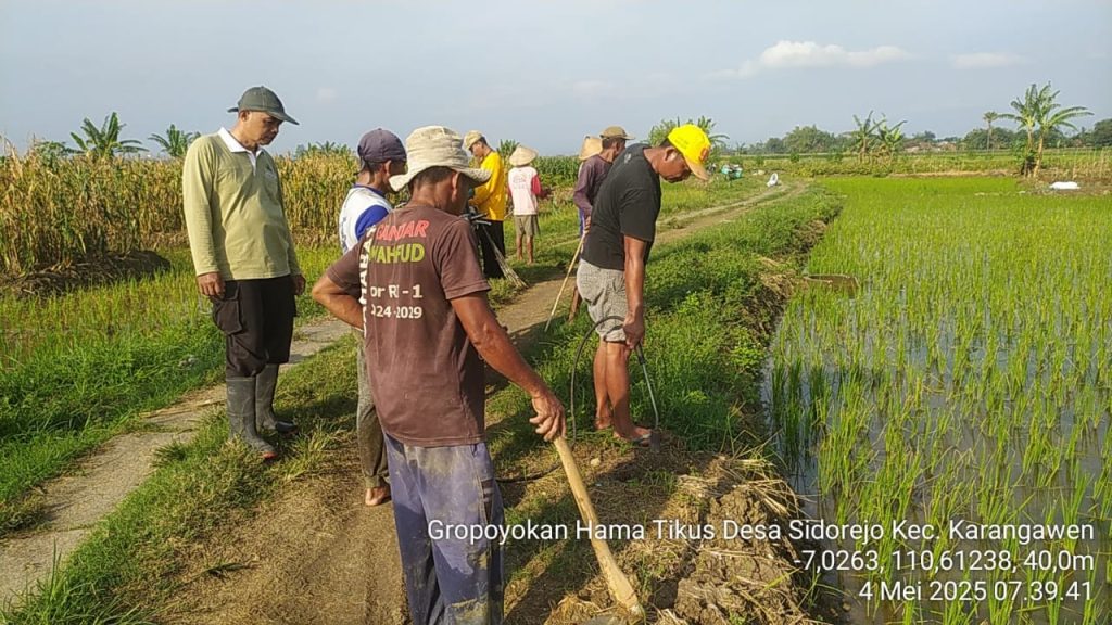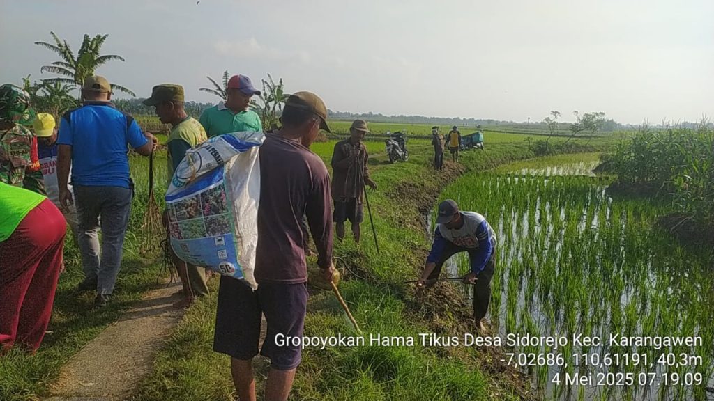 Sidorejo, 4 April 2025 – Dalam rangka mengendalikan populasi hama tikus yang menyerang tanaman budidaya petani, telah dilaksanakan kegiatan gropyokan tikus di areal persawahan Desa Sidorejo, Kecamatan Sayung. Kegiatan ini melibatkan kelompok tani dan warga sekitar yang menunjukkan antusiasme tinggi dalam pelaksanaannya.