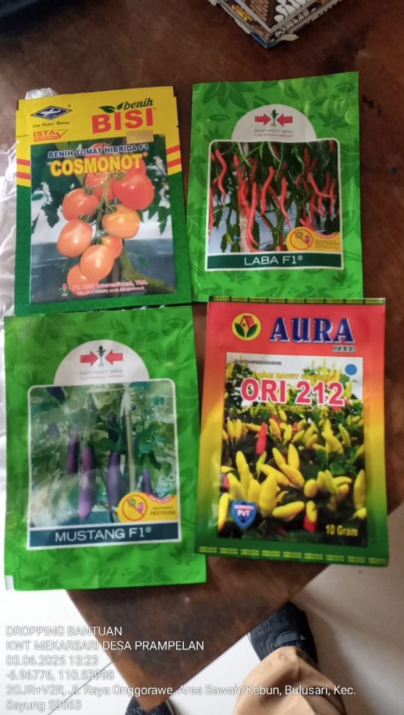 Saprodi yang didistribusikan dalam kegiatan ini antara lain berupa benih sayuran seperti cabai, terong, dan tomat, serta pupuk organik, media tanam, dan polybag. Seluruh bantuan diterima langsung oleh pengurus KWT Mekarsari dan disalurkan di titik droping yang berlokasi di Balai Desa Prampelan.