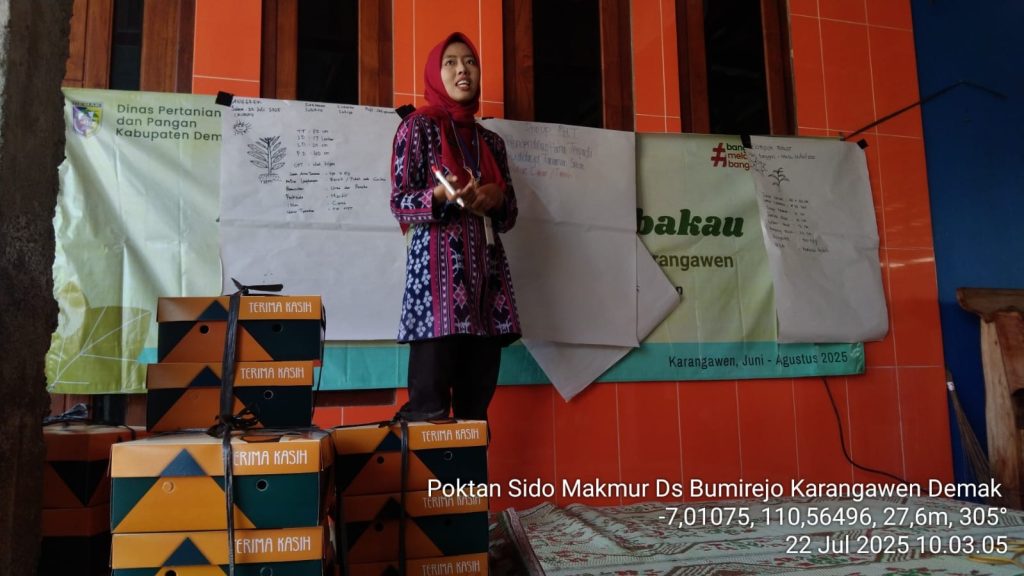 Pelatihan ini turut dihadiri oleh perwakilan dari Bidang Perkebunan Dinas Pertanian dan Pangan Kabupaten Demak, Pengendali Organisme Pengganggu Tumbuhan (POPT), Koordinator Penyuluh (Korluh), serta Penyuluh Pertanian Lapangan (PPL) wilayah binaan. Kehadiran para pendamping ini memperkuat sinergi antara petani dan pemerintah dalam upaya mewujudkan pertanian yang tangguh dan berkelanjutan.