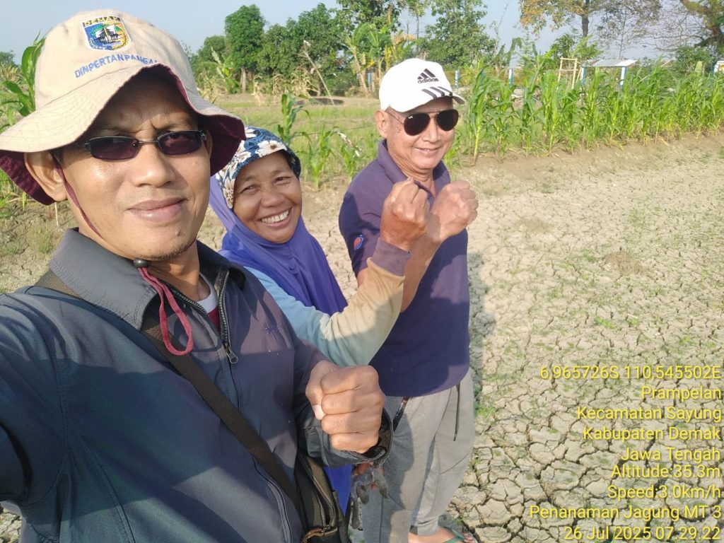 Pada hari Sabtu, 26 Juli 2025, kegiatan penanaman jagung dilaksanakan di lahan milik Ibu Maryati, anggota Kelompok Tani (Poktan) Mulyosari yang berlokasi di Desa Prampelan, Kecamatan Sayung. Lahan yang ditanami seluas 3.000 meter persegi dengan potensi hamparan mencapai 2 hektare. Dalam kegiatan ini digunakan benih jagung hibrida varietas NK 007 yang dikenal memiliki hasil produksi tinggi dan adaptif terhadap kondisi lahan di wilayah Sayung.