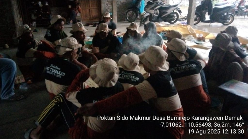 Karangawen – Penyuluhan pertanian merupakan salah satu upaya penting dalam menumbuhkembangkan kelembagaan petani sekaligus menjadi sarana diseminasi informasi dan teknologi pertanian. Pada Selasa, 19 Agustus 2025, Dinas Pertanian dan Pangan Kabupaten Demak melalui bidang Perkebunan kembali melaksanakan kegiatan Pelatihan Pengendalian Hama Terpadu (PHT) Tembakau di Poktan Sido Makmur, Desa Bumirejo, Kecamatan Karangawen.