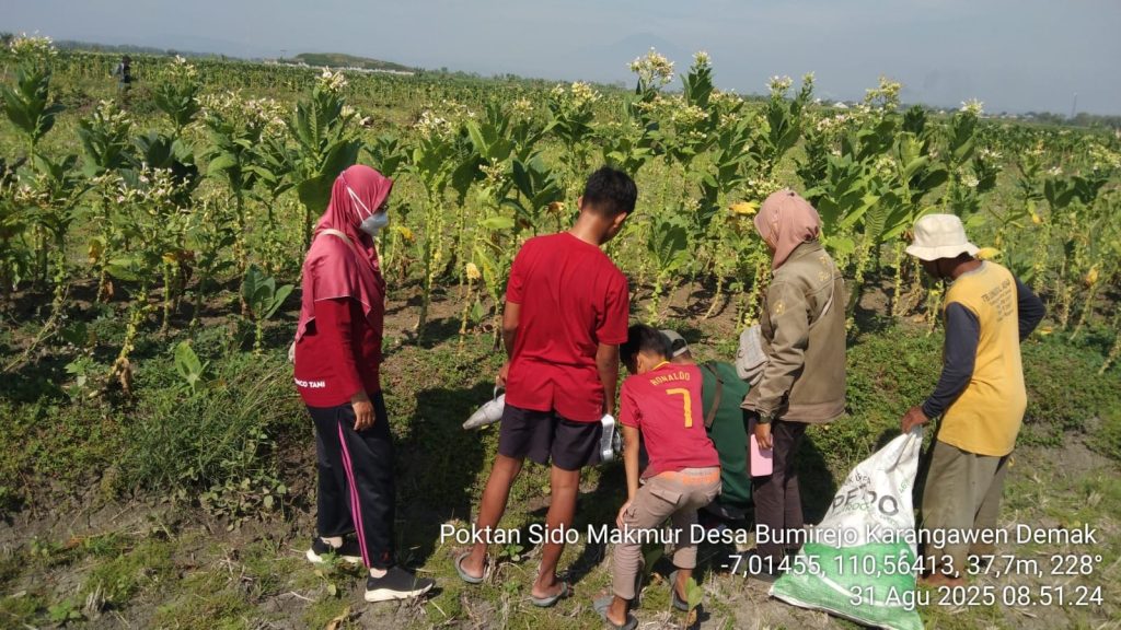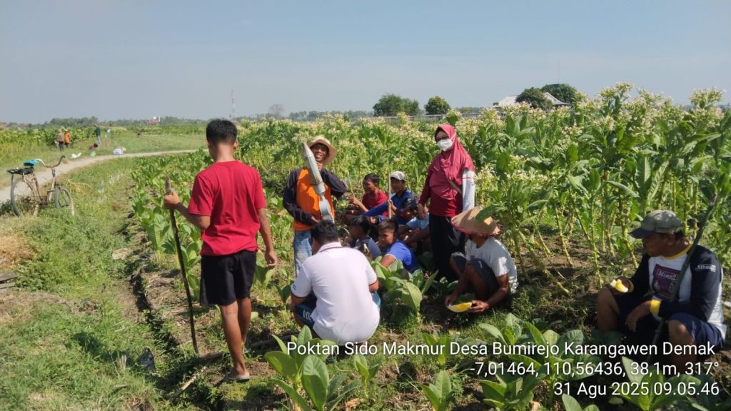 Karangawen – 31 Agustus 2025, Dinas Pertanian dan Pangan Kabupaten Demak melalui BPP Karangawen bersama petani kembali melaksanakan kegiatan Gerakan Pengendalian Organisme Pengganggu Tumbuhan (GERDAL OPT) di lahan pertanian Poktan Sido Makmur Desa Bumirejo.