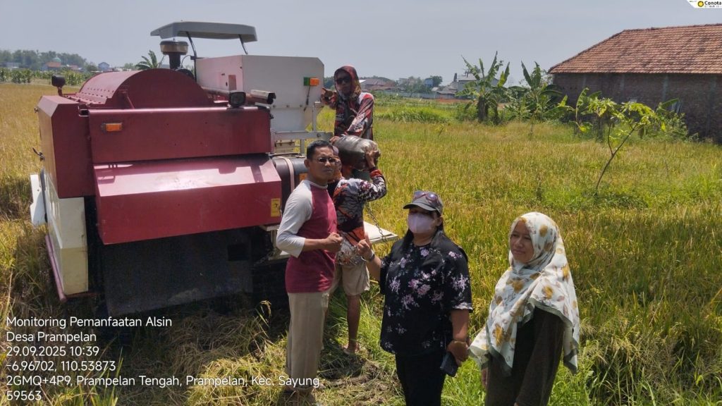 Prampelan, Kecamatan Sayung – Senin, 29 September 2025. Panen padi pada Musim Tanam III (MT 3) seringkali menghadapi tantangan unik, seperti kondisi lahan yang lebih kering, tuntutan percepatan panen untuk menyambut musim tanam berikutnya, atau menghindari datangnya musim hujan. Dalam konteks ini, optimalisasi penggunaan alat mesin pertanian (alsintan) berupa Combine Harvester Besar (CHB) menjadi kunci penting untuk meningkatkan efisiensi, menekan biaya, serta memaksimalkan hasil panen.