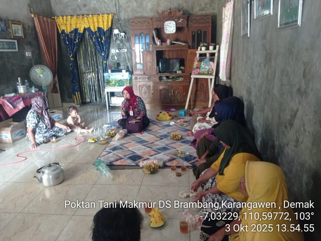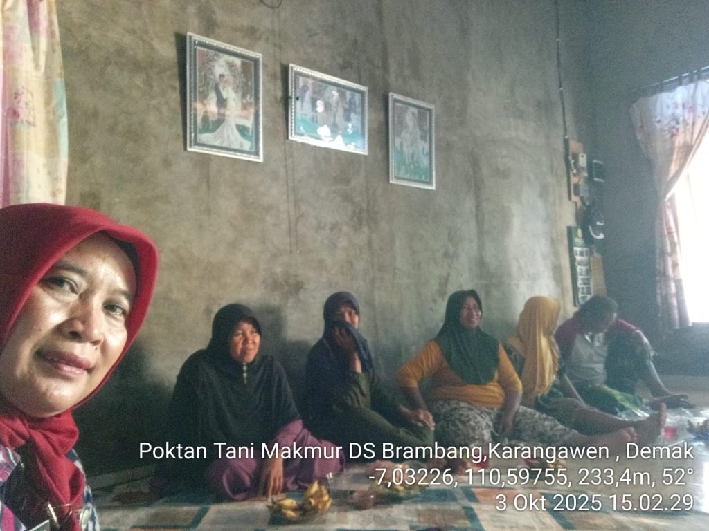 BPP Karangawen – Karangawen, 3 Oktober 2025, Kelompok Tani Tani Makmur Desa Brambang melaksanakan pertemuan rutin yang dihadiri oleh PPL Desa Brambang, Ibu Rini Handayani, S.Pt., pengurus, serta 25 anggota petani. Pertemuan yang dilaksanakan pada pukul 14.00 WIB ini menjadi wadah diskusi sekaligus sosialisasi berbagai program penting bagi petani.