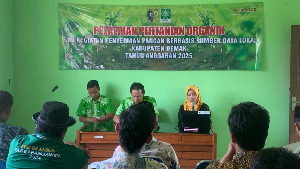 Karangawen — Semangat menuju pertanian sehat dan berkelanjutan terus digelorakan oleh para petani di Kecamatan Karangawen. Balai Penyuluhan Pertanian (BPP) Karangawen bersama Lembaga Pengembangan Pertanian Nahdlatul Ulama (LPPNU) menggelar Pelatihan Pertanian Organik yang diikuti puluhan peserta dengan antusias tinggi (16/10/2025).