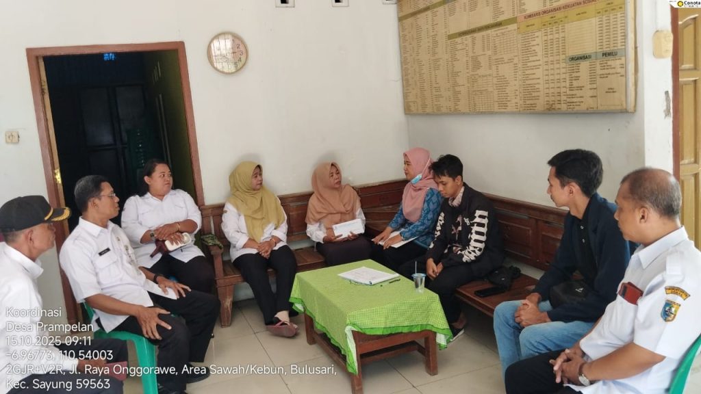 Sayung, 15 Oktober 2025 — Penyuluh Pertanian Lapangan (PPL) Balai Penyuluhan Pertanian (BPP) Sayung melakukan pendampingan kepada civitas akademik Universitas Muria Kudus (UMK) dalam kegiatan penelitian pengelolaan lahan salin di Kecamatan Sayung. Penelitian ini difokuskan di enam desa: Prampelan, Tambakroto, Pilangsari, Sayung, Sidorejo, dan Banjarsari.