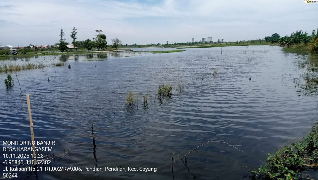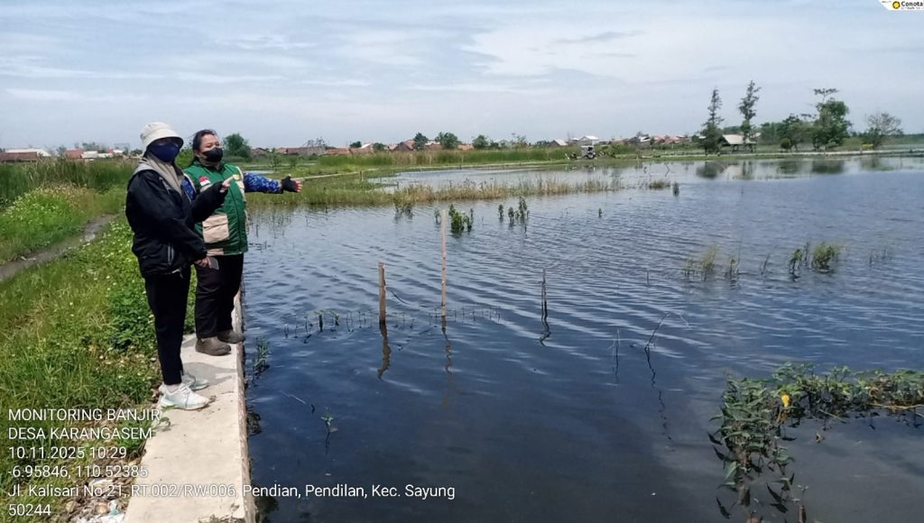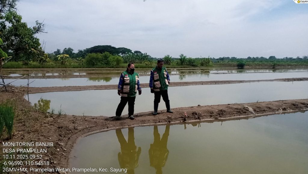 Sayung, 10 November 2025 — Banjir yang terjadi pada akhir Oktober lalu kembali memberikan dampak signifikan terhadap sektor pertanian di Kecamatan Sayung. Berdasarkan laporan tanggal 28 Oktober 2025, total 51 hektare lahan padi dilaporkan terdampak banjir akibat curah hujan tinggi dan limpasan sungai di wilayah Desa Prampelan, Sidorejo, Kalisari, Karangasem, dan Jetaksari.