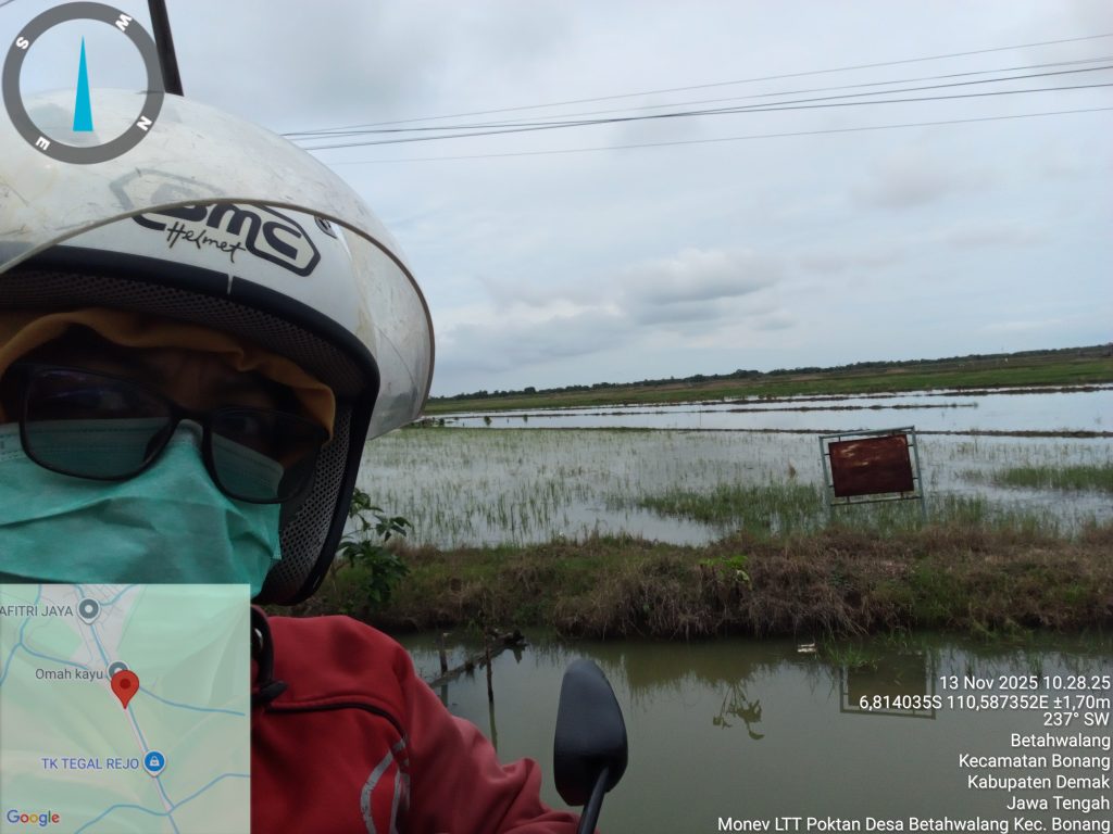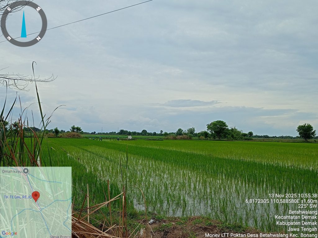 Pada hari Kamis, 13 November 2025, Penyuluh Pertanian Lapangan (PPL) BPP Kecamatan Bonang melaksanakan kegiatan monitoring realisasi luas tambah tanam (LTT) Musim Tanam I (MT I) di Desa Betahwalang, Kecamatan Bonang.