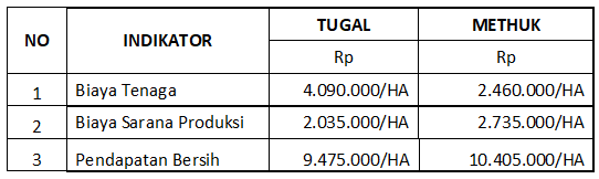 Tabel 1. Perbandingan system tanam Tugal dan Methuk