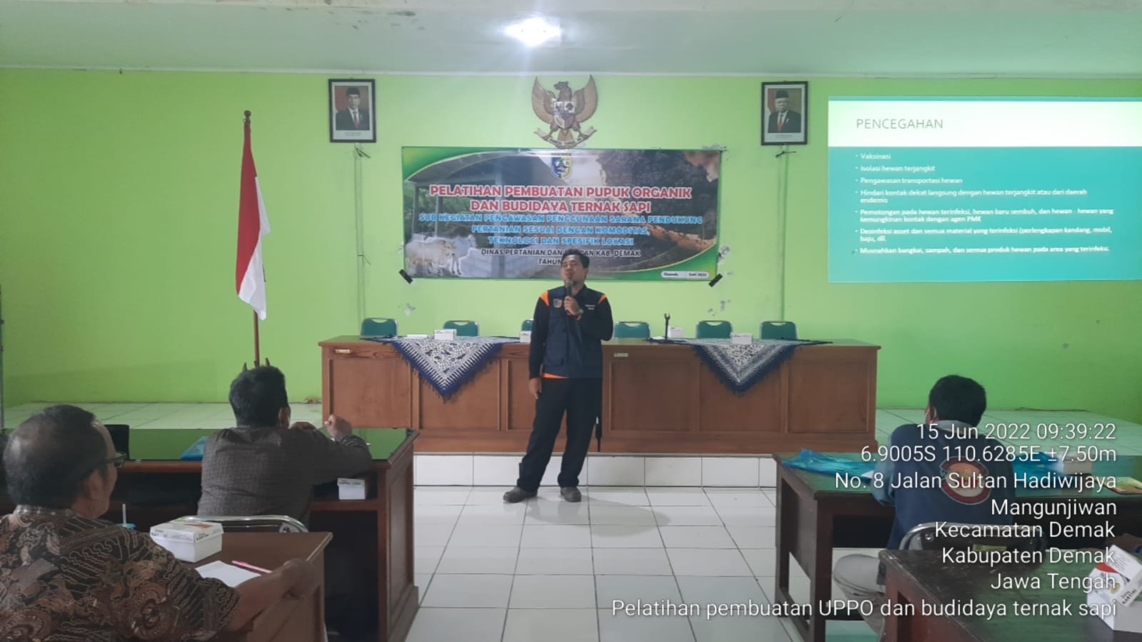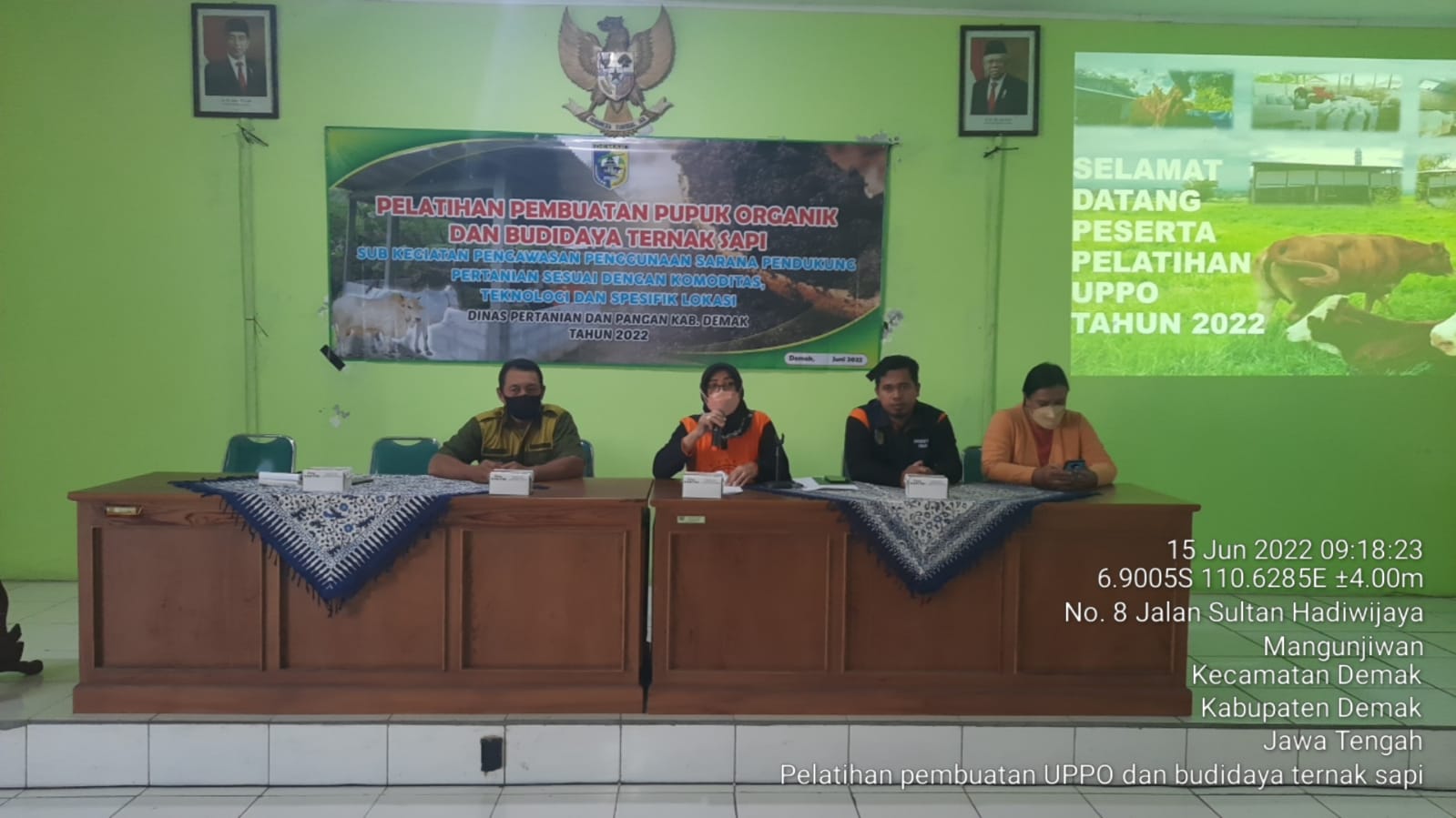 Bidang Peternakan dan Kesehatan Hewan Dinas Pertanian dan Pangan Kabupaten Demak Melaksakan Kegiatan Pelatihan Pembuatan Pupuk Organik dan Budidaya Ternak Sapi Sub Kegiatan Pengawasan Penggunaan Sarana Pendukung Pertanian Sesuai Dengan komoditas , Teknologi, dan Spesifikasi Lokasi Pada Tanggal 14-15 Juni 2022 di Aula Dinpertan Pangan Demak.