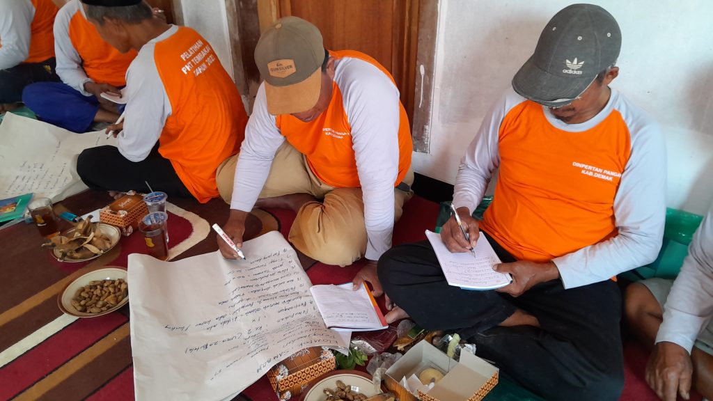 Selasa, 11 Juli 2023 Bidang Perkebunan Dinpertan Pangan Kab. Demak menyelenggarakan Pelatihan PHT Tanaman Tembakau di Poktan Tlogo Mulyo Desa Brambang Kec. Karangawen. Pertemuan ini merupakan yang kedua kalinya, dihadiri oleh 20 peserta yang merupakan anggota Poktan Tlogo Mulyo.