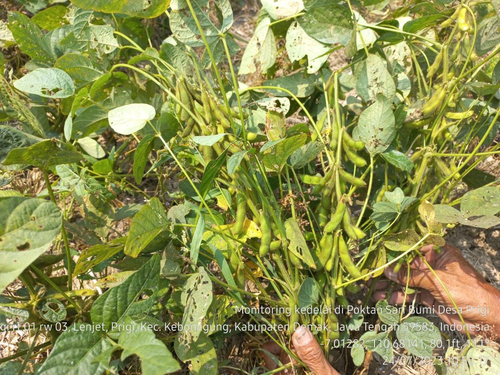 Dari hasil Monitoring dilapangan kondisi tanaman Kedelai pertumbuhannya normal dan baik, hanya ada sedikit gangguan OPT dan sudah di atasi dengan perlakuan pengendalian seacara alami. Dengan kondisi demikian kami optimis produksi yang di hasilkan sesuai dengan harapan.