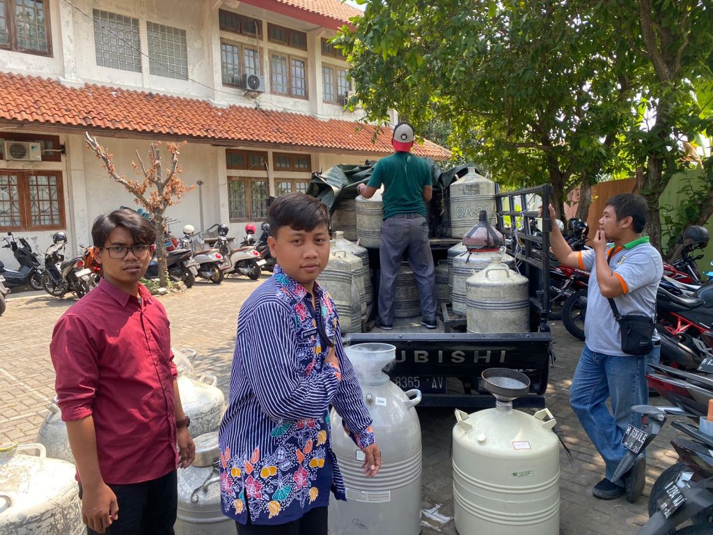 Selasa, 08 Agustus 2023, Bidang Peternakan dan Keswan Dinas Pertanian dan Pangan Kab. Demak bersama dengan inseminator Kabupaten Demak menerima dropping Nitrogen Cair (N2 cair) sebanyak 160 liter sebagai sarana prasarana kegiatan SIKOMANDAN Tahun 2023 dari Dinas Peternakan dan Keswan Pemerintah Provinsi Jawa Tengah di halaman Dinas Pertanian dan Pangan Kab. Demak