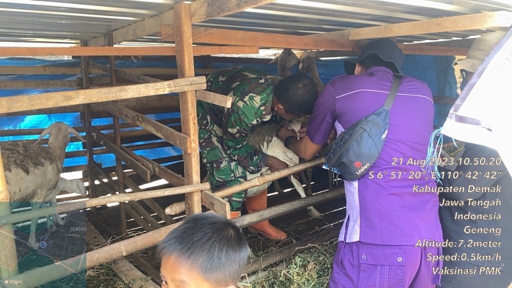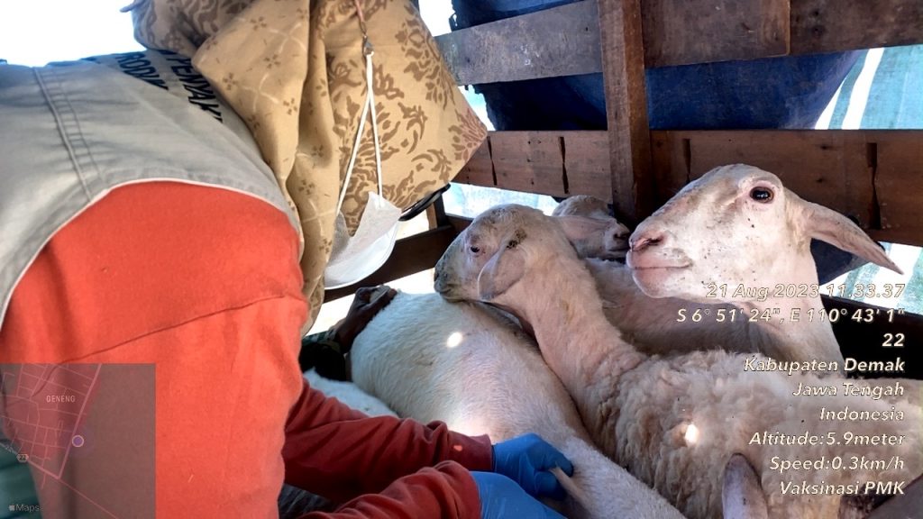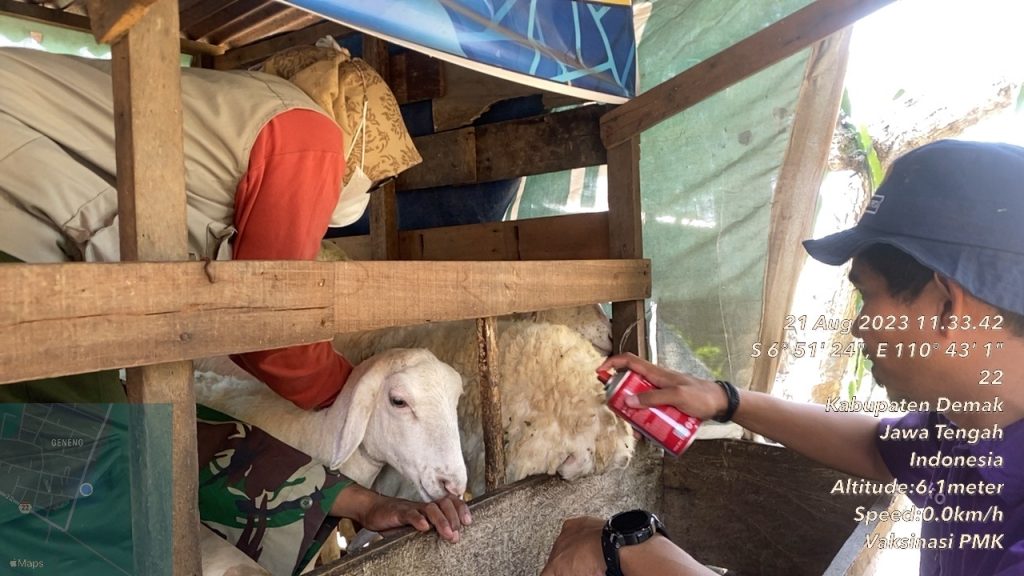 Demak, 21 Agustus 2023. Vaksinasi PMK terus dilanjut, 2 tim kali ini diterjunkan di Kec. Dempet dan Kec. Mijen. Tim 1 diketuai oleh drh. Sri Padyastuti berlokasi di Kec. Mijen dan Tim 2 diketuai oleh drh. Anastasia Winarni Yuniarti berlokasi di Kec. Dempet. Banyaknya ternak baru pasca idul adha menjadikan target vaksin pertama lebih banyak dibandingkan vaksin 2 dan 3 dengan target vaksin pada ternak kambing dan domba. Selain itu vaksin ke 2 dan 3 tentunya tetap dilanjutkan agar Kab. Demak bebas PMK.