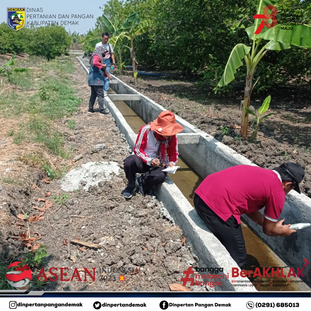 Dinas Pertanian dan Pangan Kabupaten Demak yang terdiri dari Tim Teknis dan Pengawas Lapangan kembali turun ke lapangan guna untuk melakukan pengecekan fisik pembangunan Jalan Usaha Tani (JUT) dan Jaringan Irigasi Tersier Usaha Tani (JITUT) yang bersumber dari Dana APBD II dibeberapa titik lokasi di Kecamatan Demak pada hari Jumat, 25 Agustus 2023.
