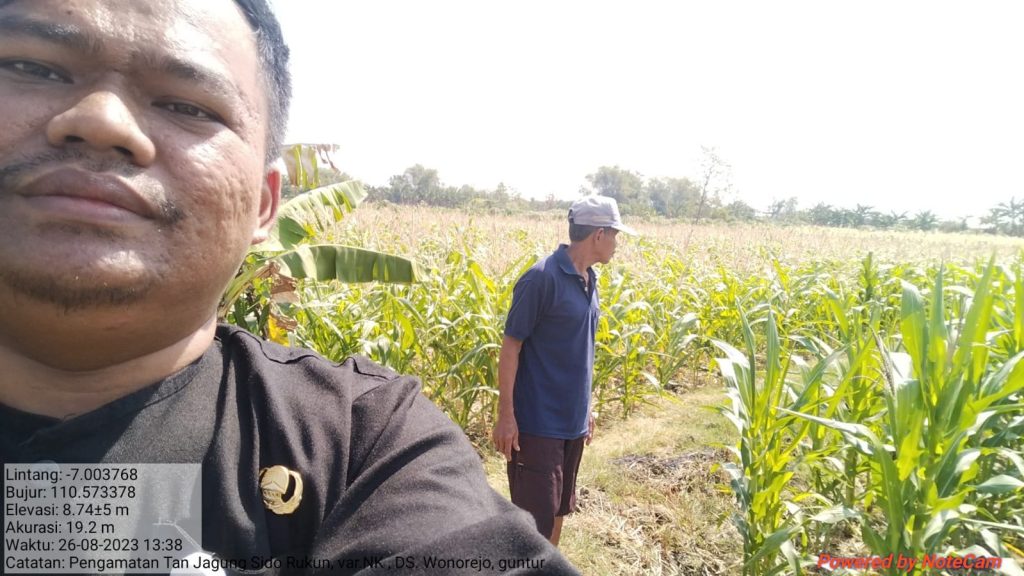 Pada hari ini tgl 28 Agustus 2023, Saudara Oky Kurniatama, S.Pt selaku penyuluh pertanian di wilayah wonorejo melaksanakan giat pemantauan tanaman khususnya pada tanaman jagung dan tembakau. Terlihat dari kejauhan ada bapak petani di sekitar pematang sawah. Saudara Oky mendekati bapak petani tersebut dan ternyata pak bulkim yang sudah dikenal oleh warga sekitar sebagai ketua kelompok tani.