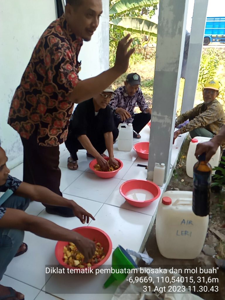 Kegiatan Pelatihan Tematik Merupakan Pola Pembelajaran dengan Tema dan Materi yang disusun berdasarkan Potensi Pertanian yang ada. Pelatihan dilaksanakan dengan penyampaian Materi oleh Narasumber dan disertai dengan Praktek Langsung. Pelatihan Tematik kali ini mengangkat Tema “sosialisasi Geospasial dan pembuatan biosaka serta MOL (Mikro Organisme Lokal”.