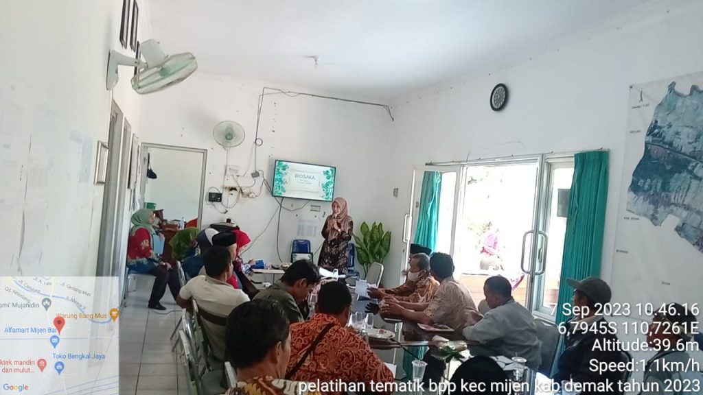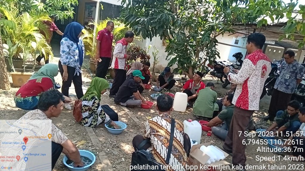 Balai Penyuluhan Pertanian (BPP) Kecamatan Mijen pada hari Kamis 07 September 2023 menggelar pelatihan tematik bagi Perwakilan Petani se-Kecamatan Mijen. Pelatihan tersebut terselenggara melalui anggaran DAK Non Fisik TA 2023. Pelatihan ini mencakup tiga topik utama yaitu Peta Geospasial, Photosynthetic Bacteria (PSB) dan Pembuatan Biosaka. Pelatihan ini bertujuan untuk meningkatkan pengetahuan dan keterampilan petani dalam menerapkan teknologi pertanian yang lebih modern dan berkelanjutan.