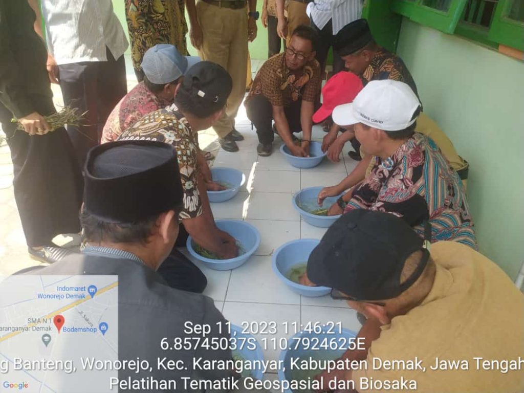 Pelatihan tematik dilanjutkan pemaparan materi yang pertama yaitu materi tentang Geospasial oleh Ibu Fajriah Lita Pamungkasari dari Dinas Perumahan Dan Kawasan Pemukiman Kab. Demak, untuk materi berikutnya yaitu pemaparan tentang BIOSAKA yang diampaikan oleh Ibu Marlita Marlita Jessiga SP yang mendapatkan sambutan yang antusias dari para petani dengan banyaknya pertanyaan yang dilontarkan oleh para peserta mengenai BIOSAKA ini.