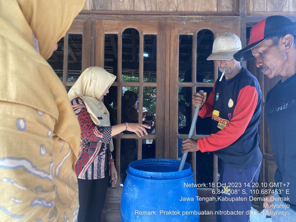 Praktek pembuatan nitrobacter sangat direkomendasikan karena menghemat biaya pembelian pupuk kimia urea. Nitrobacter merupakan bakteri yang bisa menambat nitrogen dari udara menjadi nitrogen yang dapat diserap oleh tanaman. Pada hari Rabu (18/10) poktan Sido Dadi Ds. Mulyorejo bersama penyuluh Kecamatan Demak melaksanakan praktek pembuatan nitrobacter untuk selingan pemakaian pupuk urea.