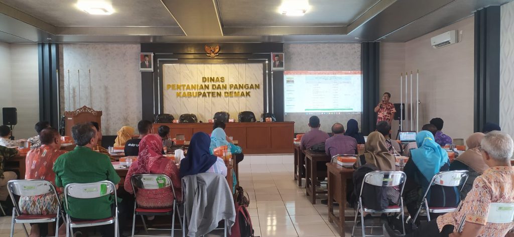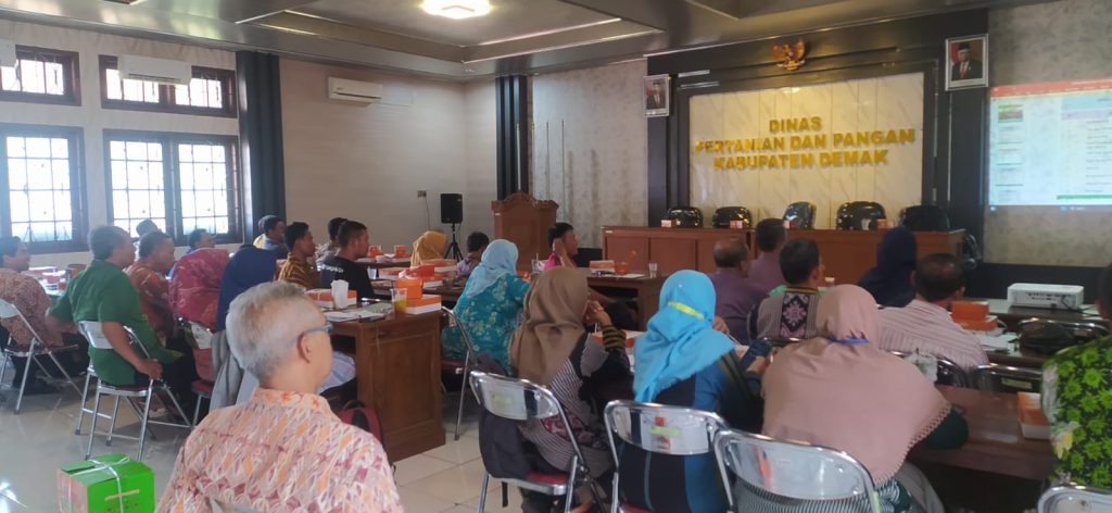 Dinas Pertanian dan Pangan Kabupaten Demak sebagai dinas yang melaksanakan fungsi penyuluhan pertanian menyelenggarakan kegiatan penyusunan dan pengesahan Programa Penyuluhan Pertanian Kabupaten Tahun 2024. Kegiatan berlangsung di aula Dinas Pertanian dan Pangan melalui Bidang Prasarana, Sarana dan Penyuluhan yang diikuti Sekretaris Dinas, Sub Koordinator Penyuluhan, Kasubbag Program, Koordinator Penyuluh Pertanian se-Kabupaten Demak, Admin BPP se-Kabupaten Demak, perwakilan KTNA dan 5 petani milenial pada hari Selasa (31/10/2023).