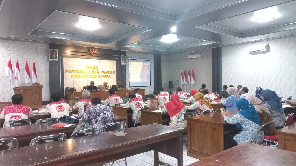 Demak – Dalam rangka penyaluran bantuan pangan beras tahun 2024, Bidang Ketahanan Pangan Dinas Pertanian dan Pangan Kabupaten Demak melaksanakan kegiatan rapat koordinasi persiapan penyaluran bantuan pangan beras kepada koordinator penyuluh pertanian Kabupaten Demak. Kegiatan rakor dilaksanakan di Aula Dinas Pertanian dan Pangan Kabupaten Demak pada Hari Kamis, 18 Januari 2024.