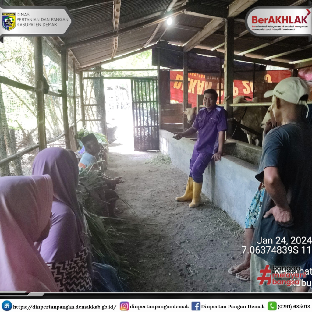 Demak – Dalam rangka pencegahan dan pengendalian penyakit Hewan Dinas Pertanian dan Pangan Melalui Bidang Peternakan dan Keswan melaksanakan Kegiatan Pengobatan yaitu dengan jemput bola ke Kelompok Ternak Kelompok Ternak untuk pencegahan dan pengendalian penyakit dengan pemberian vitamin dan obat cacing. Lokasi pertama pengobatan yaitu Kecamatan Mranggen di Desa Kebonbatur dan Desa Mranggen dengan berkoordinasi oleh Petugas Peternakan Kecamatan (P2K) Mranggen (24/01/2024).