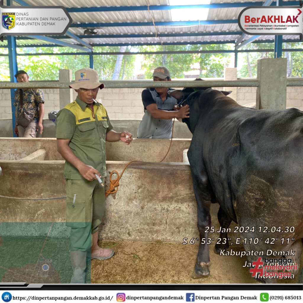 Demak – Dalam rangka pencegahan dan pengendalian penyakit Hewan Dinas Pertanian dan Pangan Melalui Bidang Peternakan dan Keswan melaksanakan Kegiatan Pengobatan yaitu dengan jemput bola ke Peternak dan Kelompok Ternak untuk pencegahan dan pengendalian penyakit dengan pemberian vitamin dan obat cacing. Lokasi pengobatan yaitu di Desa Kuncir Kec. Wonosalam dengan berkoordinasi oleh Petugas Peternakan Kecamatan (P2K) Wonosalam (25/01/24).