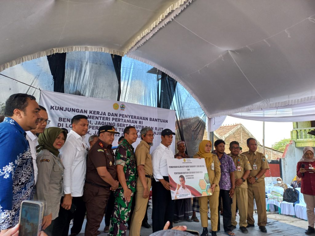 KUNJUNGAN KERJA DAN PENYERAHAN BANTUAN MENTERI PERTANIAN RI (BENIH PADI, BENIH JAGUNG SERTA AUTP DAN RJIT) DI LOKASI PERTANIAN TERDAMPAK BANJIR