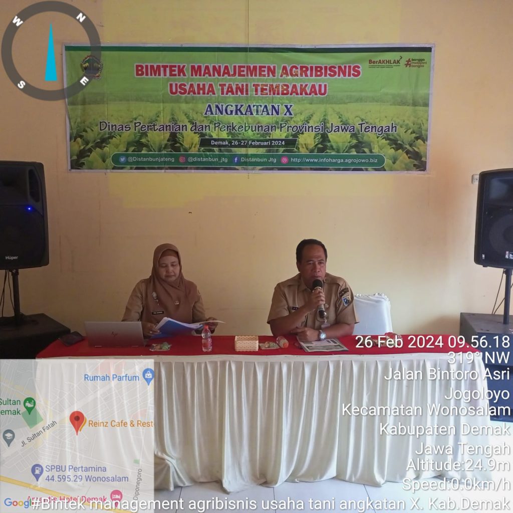 Demak – Dinas Pertanian dan Perkebunan (Distanbun) Provinsi Jawa Tengah bekerja sama dengan Dinas Pertanian dan Pangan (Dinpertan Pangan) Kabupaten Demak menyelenggarakan Bimbingan Teknis (Bimtek) Manajemen Agribisnis Usaha Tani Tembakau Angkatan IX dan X (26/02/2024).