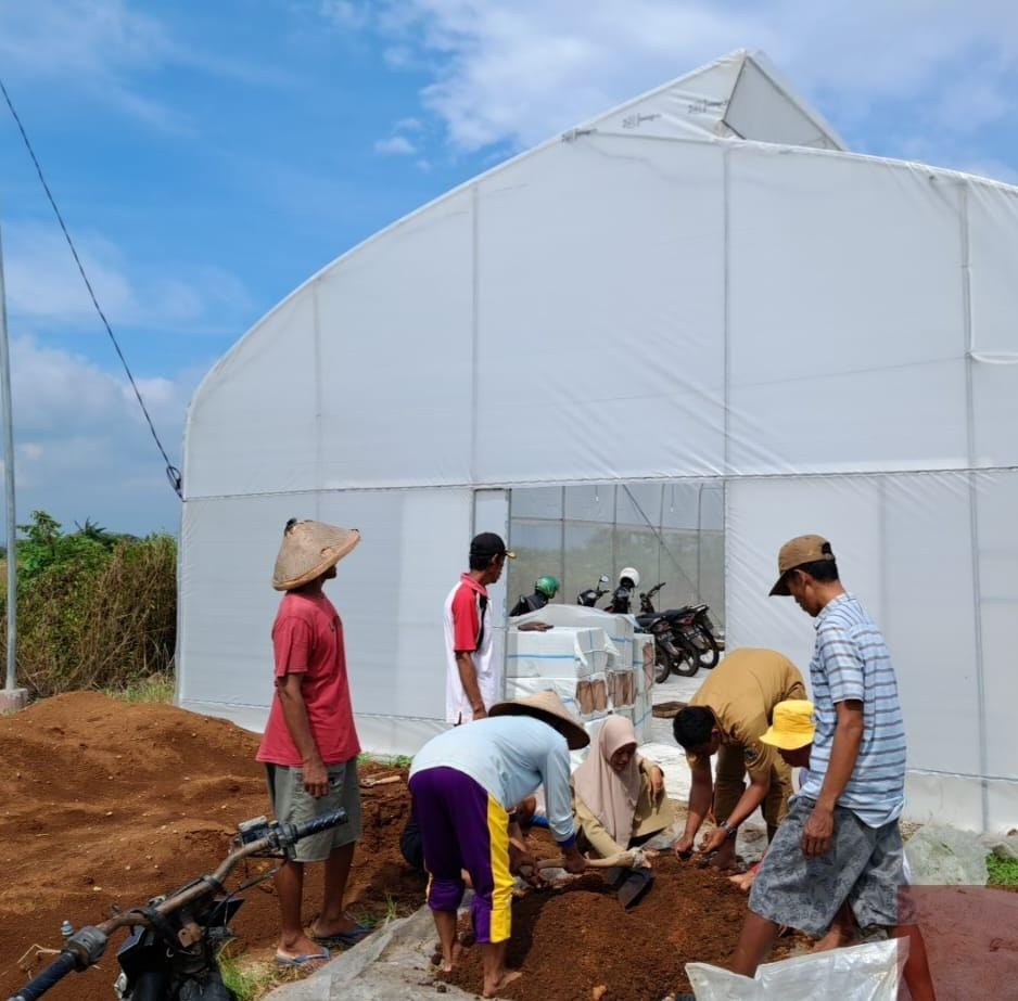 M. Hatib, S.P. menerangkan “Alhamdulillah sore ini para pengurus maupun anggota Poktan Tani Jaya melaksanakan persemaian perdana dengan benih cabai merah keriting Varietas F1 (BISI) dengan target semai 1 juta Cabai dan 1 juta Bawang merah TSS, sampai sore ini sudah menyemai 6.000 benih cabai”.
