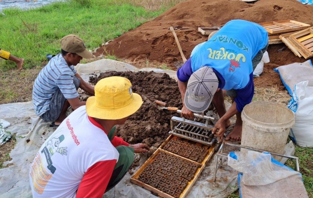 “Persemaian menggunakan teknologi Soil Block sudah di praktikkan melalui Bimtek bulan lalu dan sangat bermanfaat sekali bagi kami, karena untuk mempermudah penyiapan benih yang dibutuhkan oleh petani serta biaya lebih murah, mudah dan cepat” jelas Susiyono selaku anggota Poktan Tani Jaya.